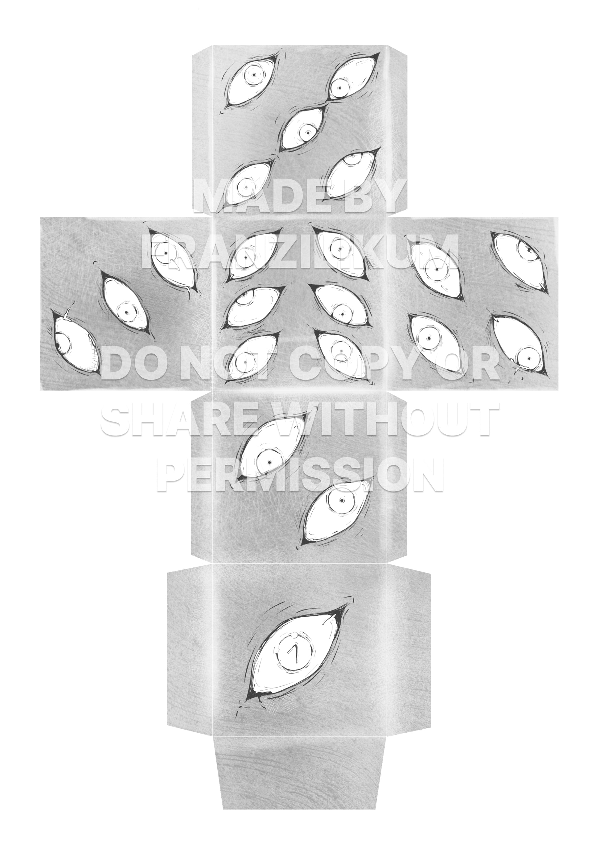Du erhältst eine PDF-Datei mit 24 verschiedenen Prison Realm-Würfeln, die du selbst ausdrucken, ausschneiden und zusammenkleben kannst.