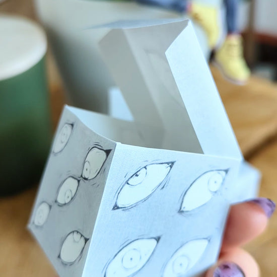 Die Größe des Würfels hängt von den Druckeinstellungen und dem ausgewählten Papierformat ab und kann daher perfekt an den Inhalt angepasst werden. Die Würfel aus den Fotos wurden aus einfachem A4 Druckerpapier gebastelt.